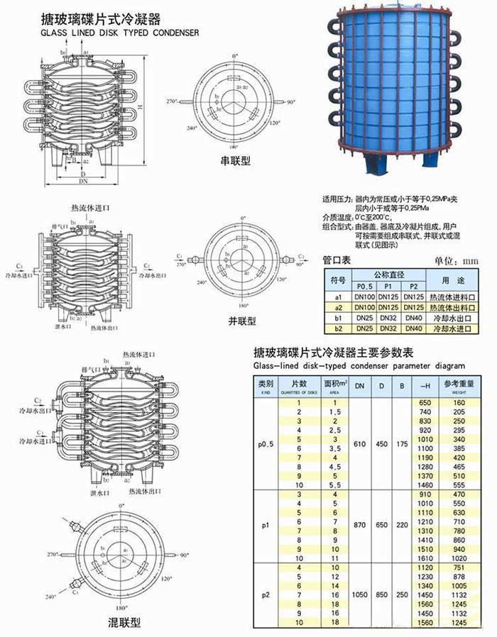搪玻璃蝶片式冷凝器參數表